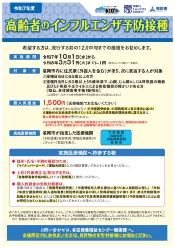 今年も、高齢者のインフルエンザ予防接種が開始します。